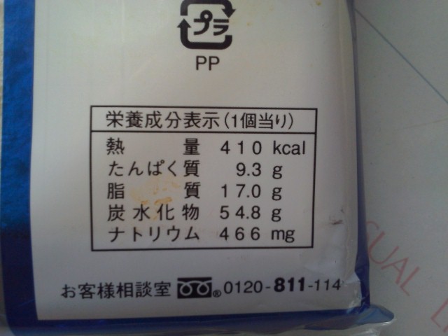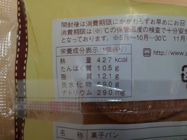 コレ1個で324kcalで、この手のパンではカロリーも控えめなのもうれしいです。