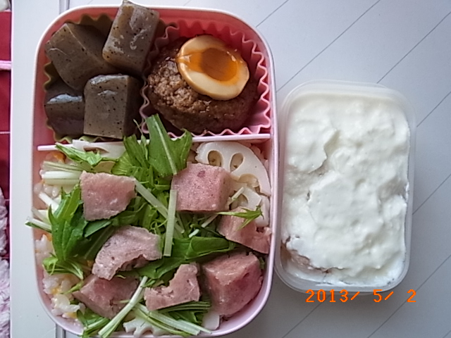 2013.05.02 帰省まえなので、今日も昨日とほぼ同じ弁当です