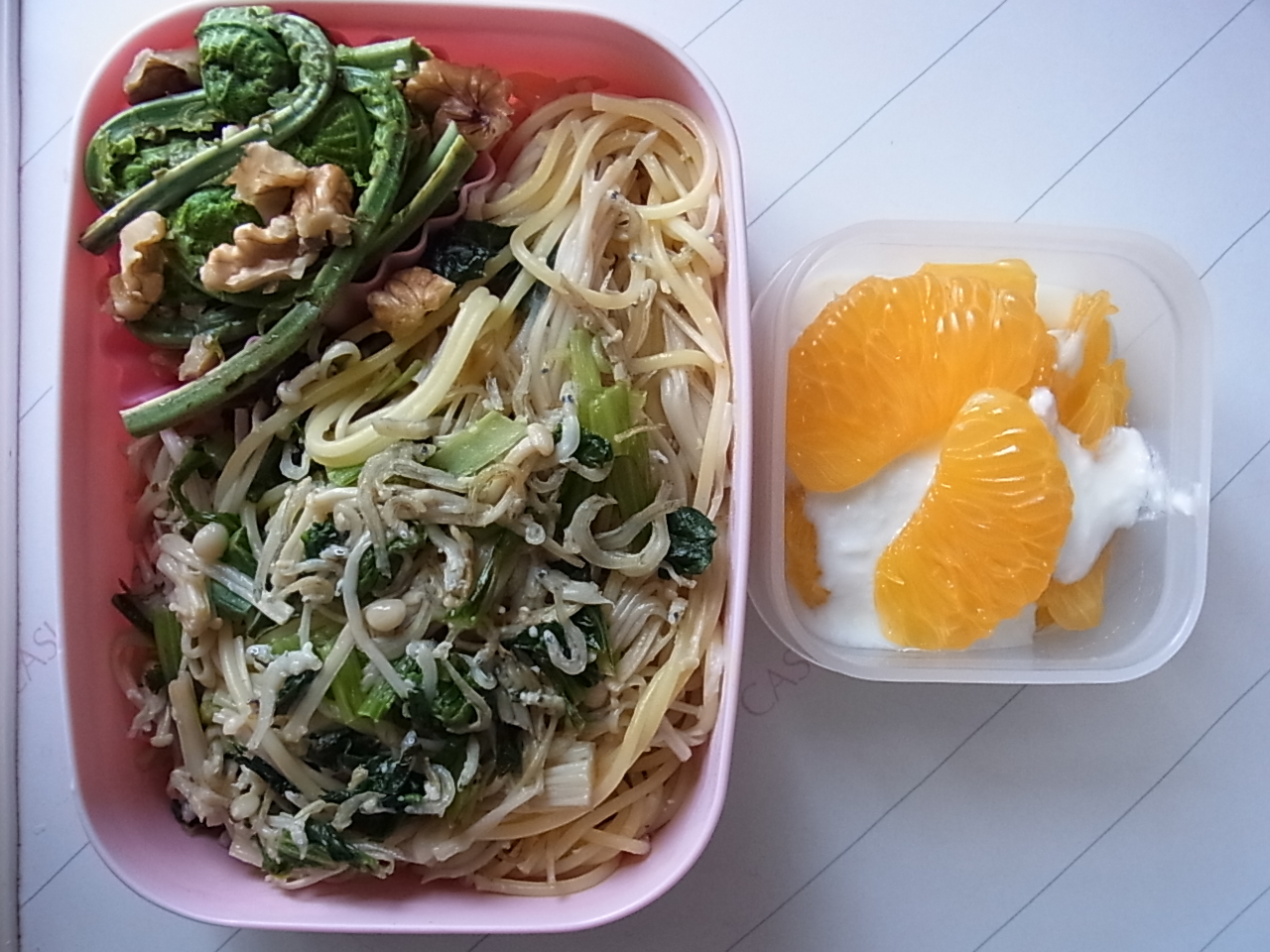 2013.05.09 シラスと小松菜、えのきの塩麹パスタ ヨーグルト添え