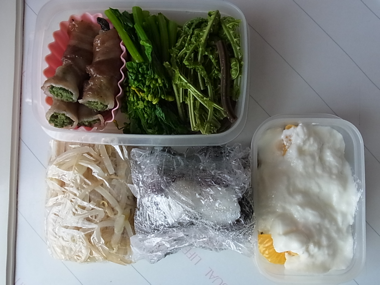 2013.05.18 山菜いっぱい弁当 タラの芽の肉巻き、こごみのお浸し