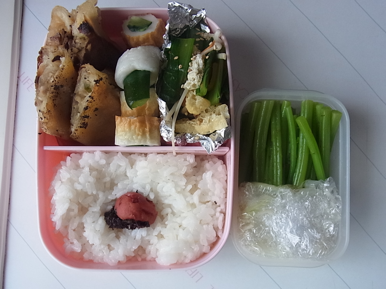 2013.06.11 春巻きと小松菜、ミズのお浸し弁当