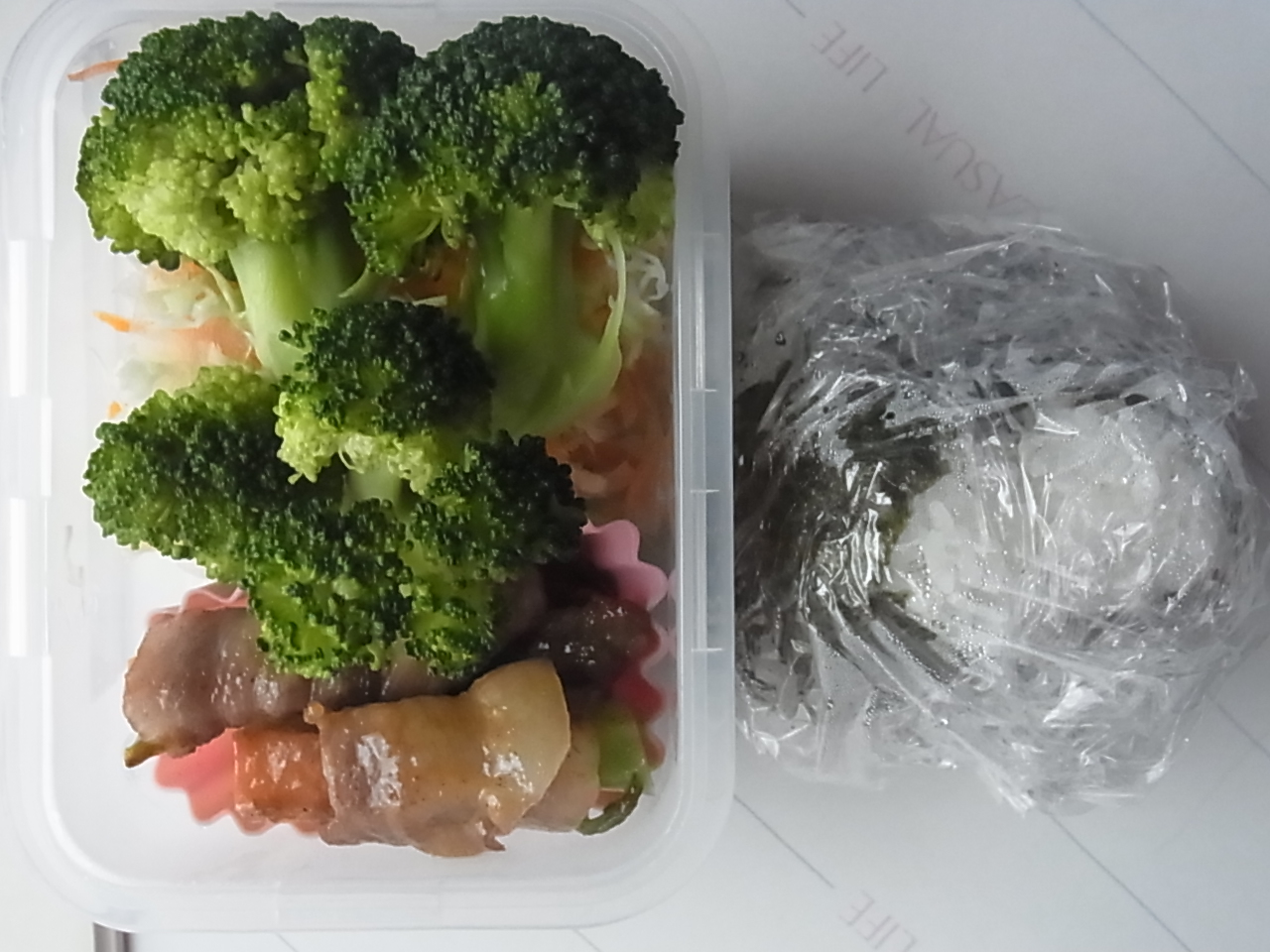 2013.06.19 サラダ、野菜の豚肉巻きとおにぎり