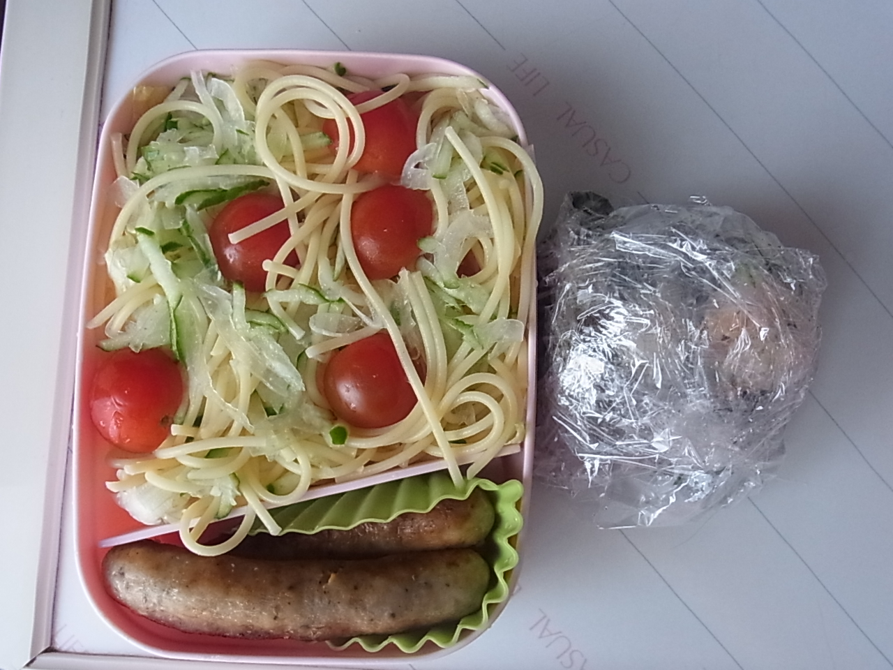 2013.06.23 スパゲティサラダとおにぎり、生ソーセージ2日目