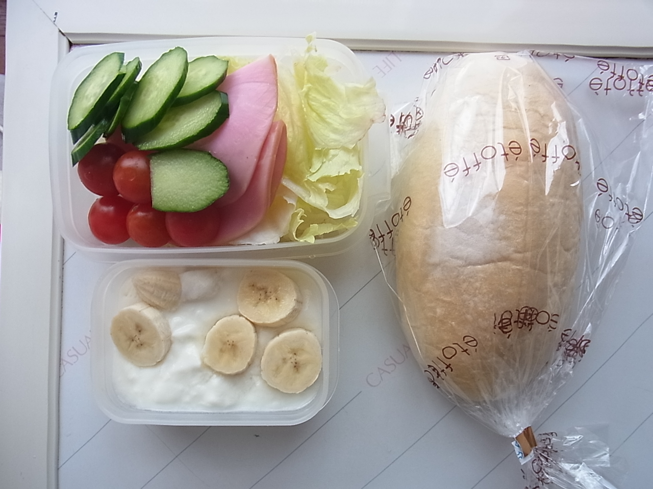 2013.06.27 サラダ、バナナヨーグルト、白パンで手抜き