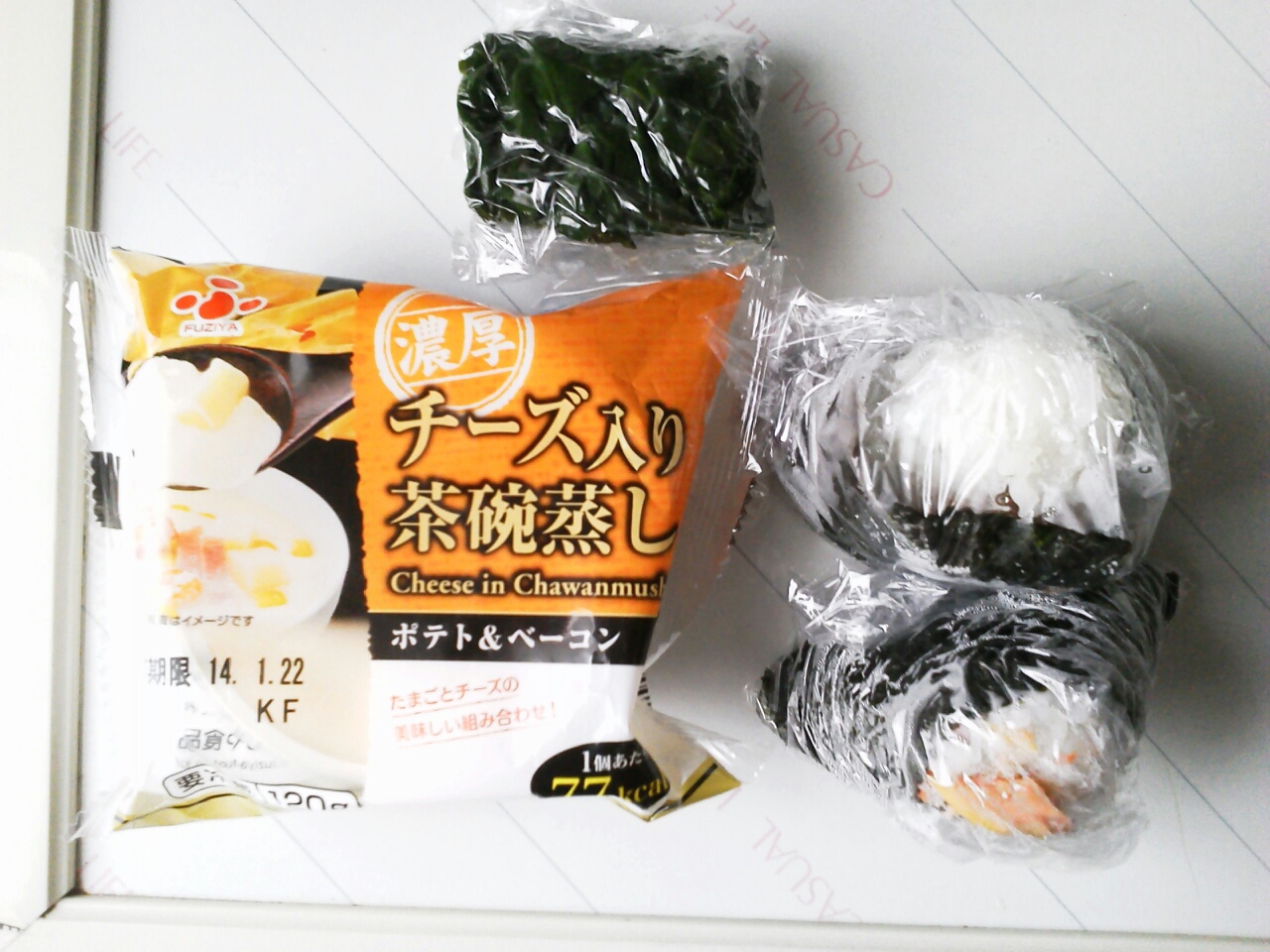 2014.01.17 チーズ入り茶碗蒸し、おにぎり