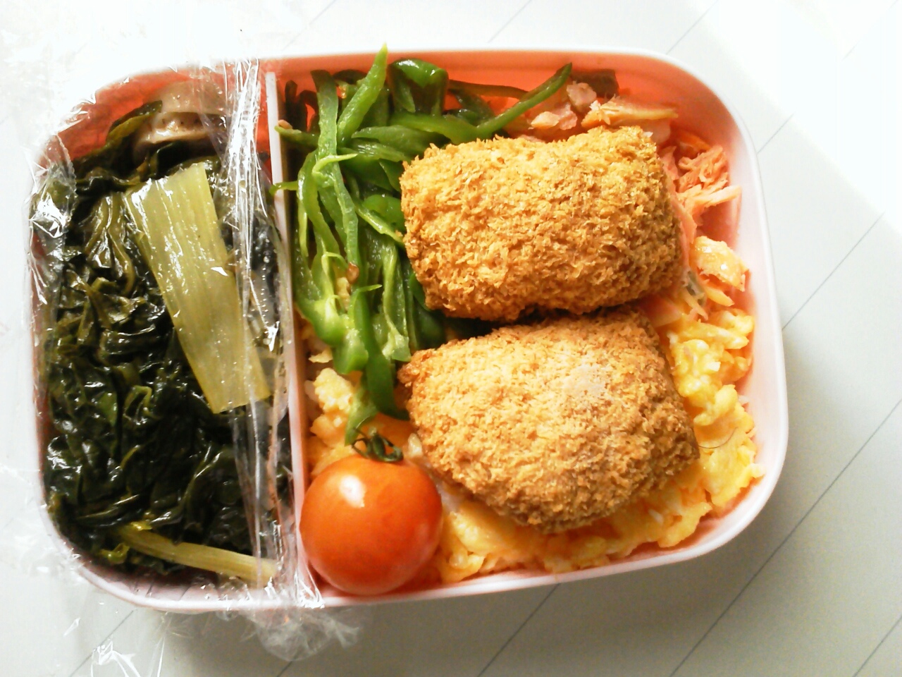 2014.01.29 マーガリンサンド、スクランブルエッグ、長いもソテー、メンチカツ