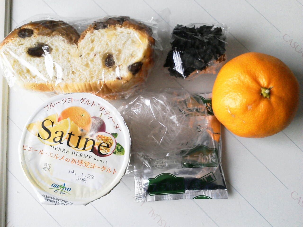 2014.01.20 ホイップサンドレーズンパン、サティーヌ、はるさめスープ