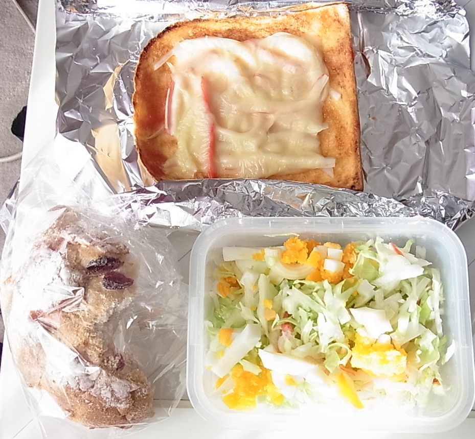 2013.02.05 パンの端トーストとクランベリーとマカダミアナッツパンとサラダ弁当