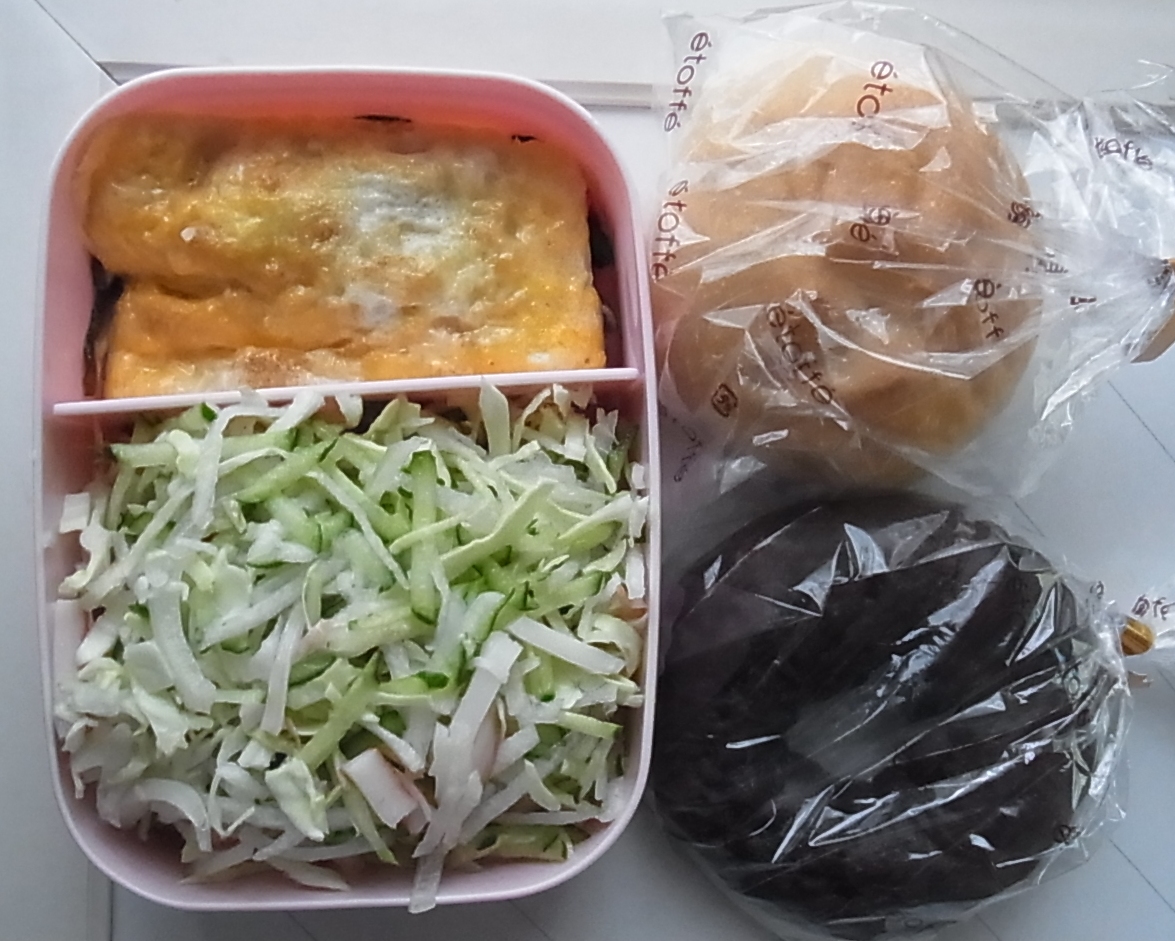 2013.02.13 ほうれん草オムレツ、チーズフランスとベーグルパン弁当