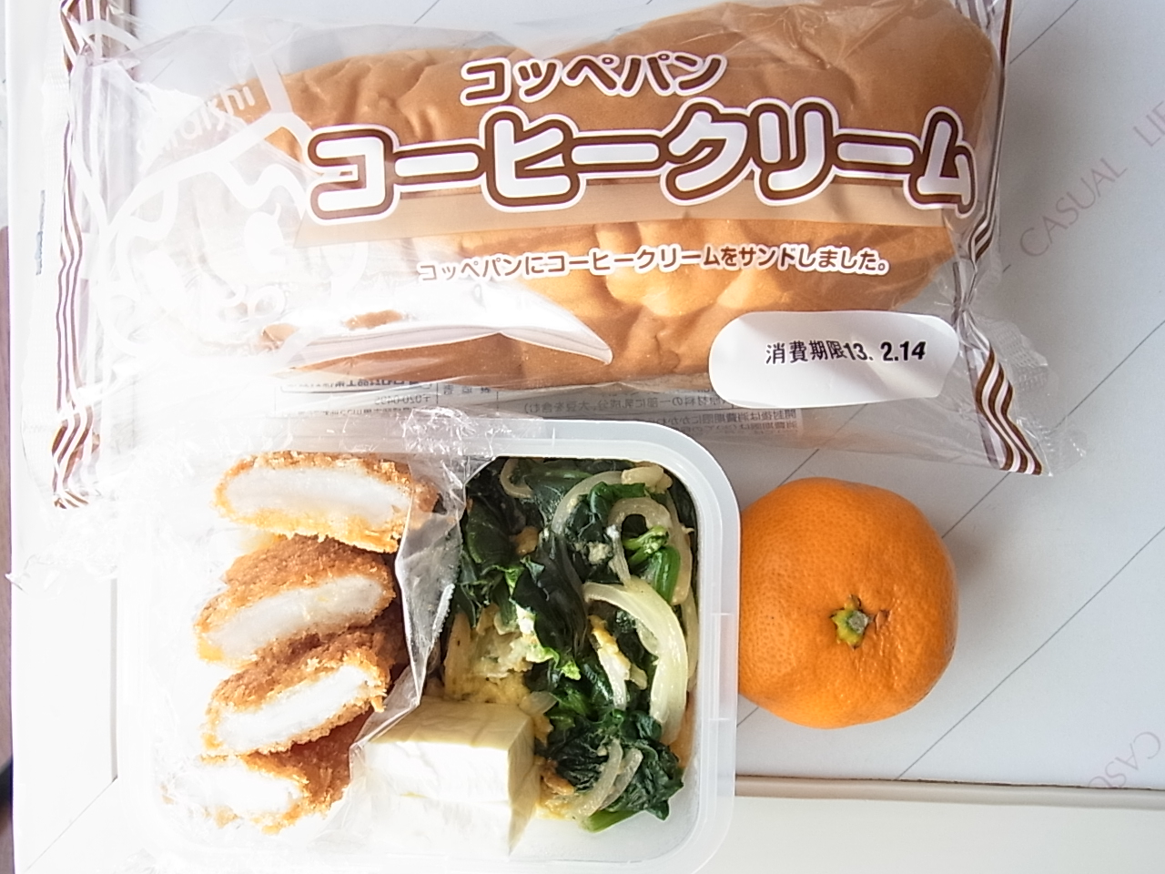 2013.02.15 イカフライとほうれん草ソテー、コッペパン