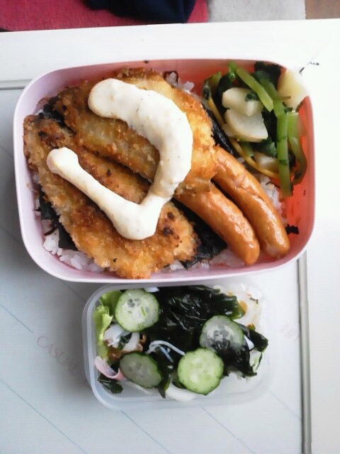 2014.06.14 冷やしかき揚げうどん ポテサラ、温キャベツソーセージのせ