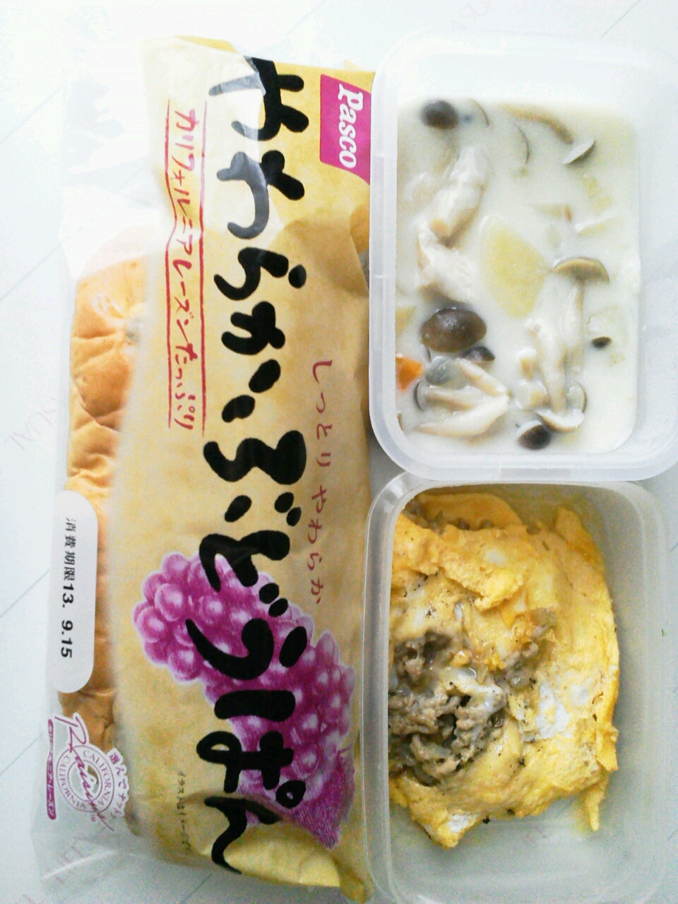 2013.09.18 オムライスとシチュー、やわらかぶどうパン