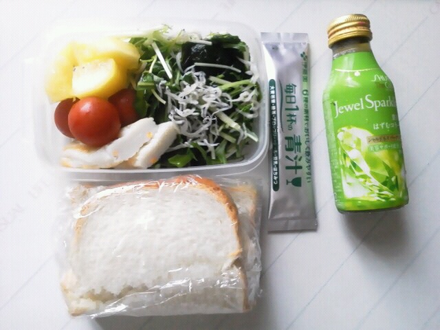 2014.05.30 メンチカツサンド スパークリングコラーゲンドリンク 青汁