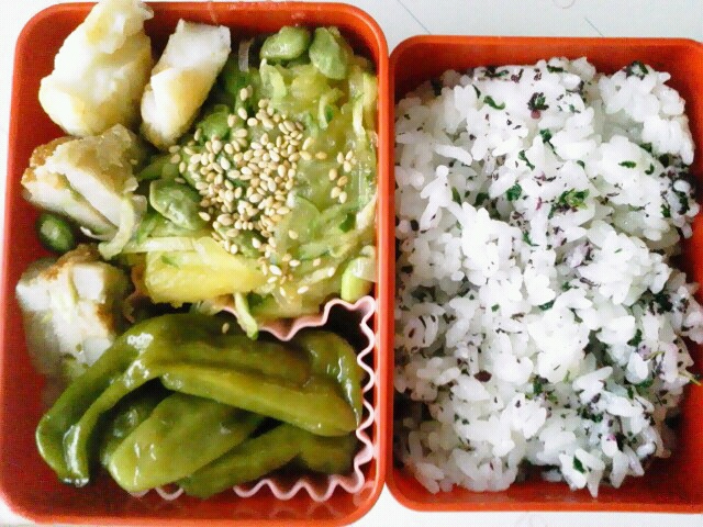 2013.08.20 そうめんかぼちゃの和え物、ししとう炒め煮
