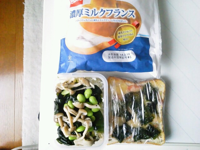 2014.03.18 ジャコとハムのチーズトーストとサラダ